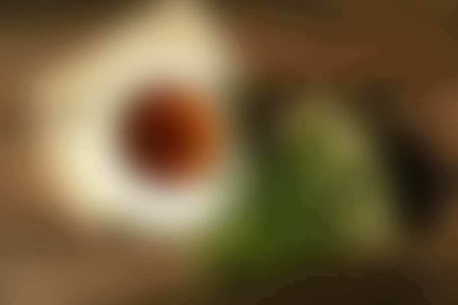 Cup of fresh herbal tea on wooden table